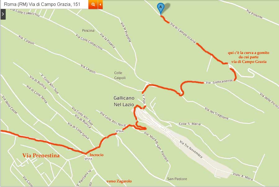 incrocio dove a destra si va per Zagarolo (e non ci interessa); dobbiamo