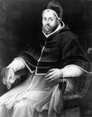 GREGORIO XIV Le pressioni degli ambasciatori di Filippo II si fecero sentire e il 5 dicembre 1580 fu eletto il cardinale Niccolò Sfondrati. Non era uomo preparato al grave compito, si trattava di un asceta dai costumi angelici, cosciente della sua insufficienza e della sua ingenuità negli affari di Stato, si fidò ciecamente del nipote Paolo Emilio Sfondrati che nominò cardinale e segretario di Stato: fu la rovina della politica istaurata da Sisto V. Morì il 16 ottobre del 1591 e fu sepolto nella cappella Gregoriana in S. Pietro.